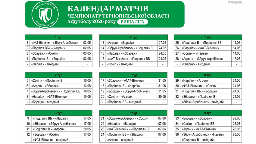 Календар матчів чемпіонату області. Вища ліга. Перше коло